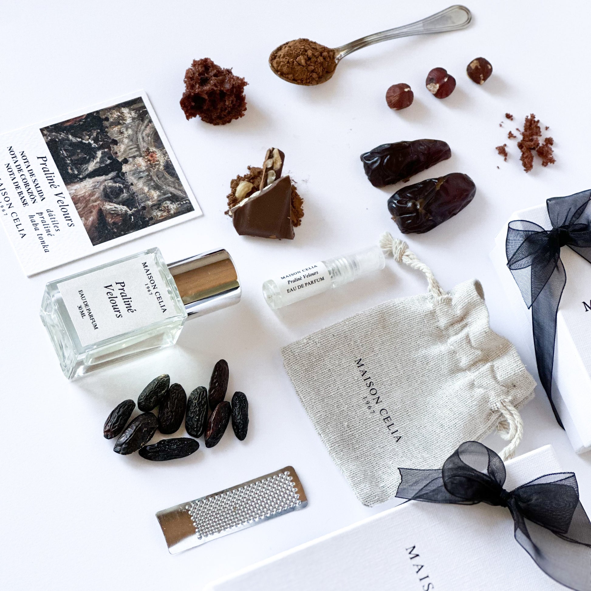 Praliné Velours is a gourmand, sensual, and addictive creation. Juicy dates, creamy praline, and the warm embrace of tonka bean merge into a delectable fragrance that awakens desire from the very first moment, leaving a velvety, enveloping, and unforgettable trail.